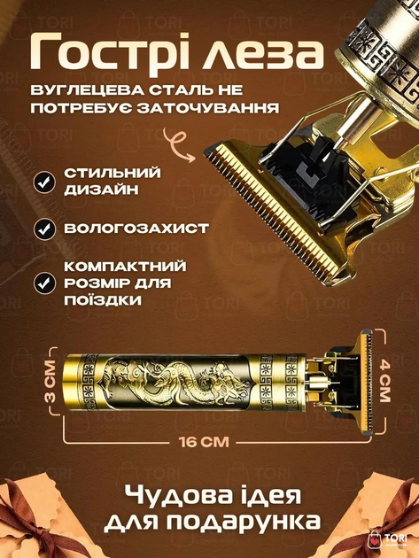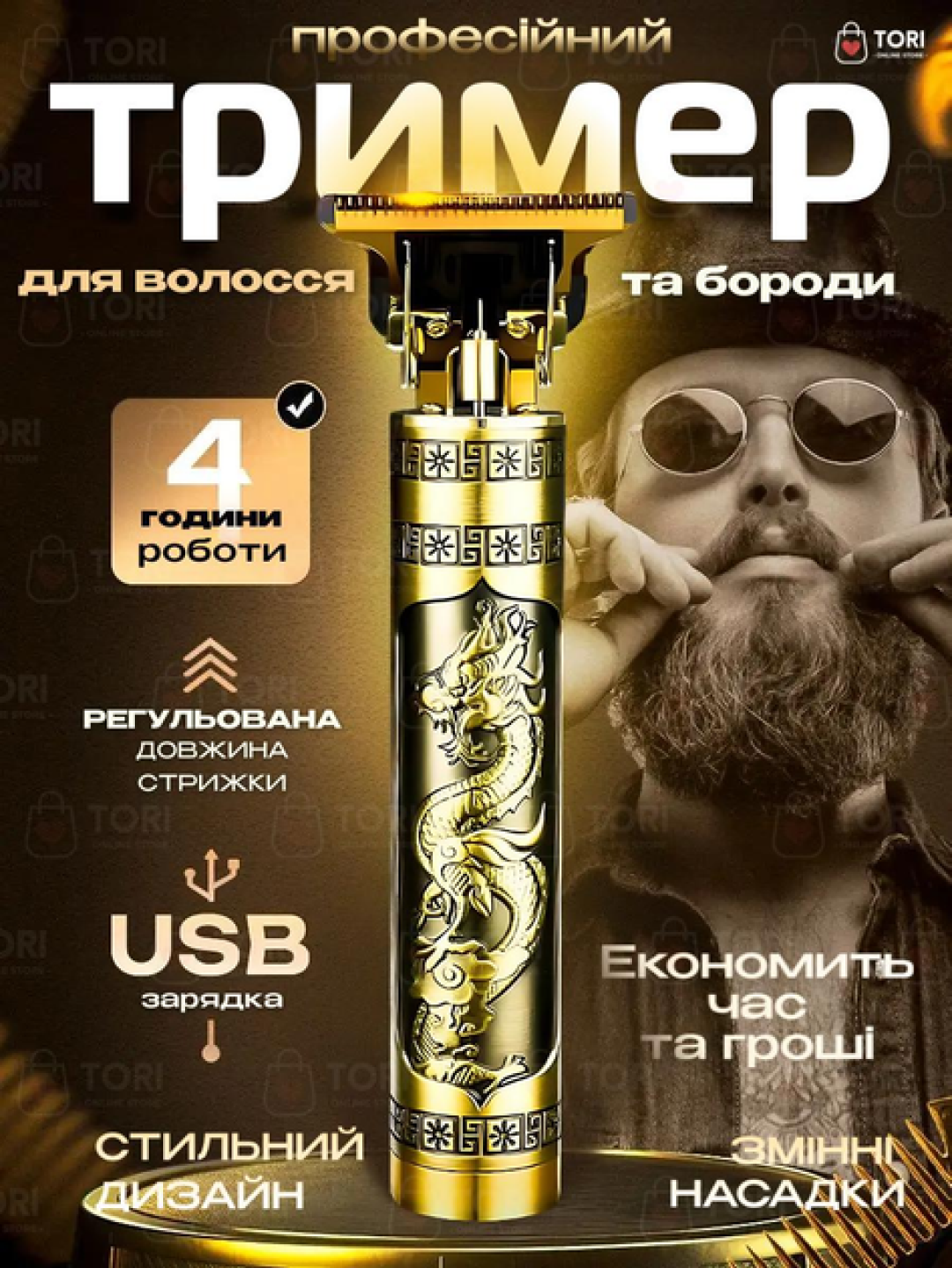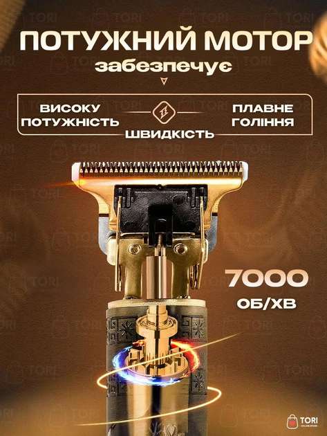 ⚡ Стильний золотий металевий корпус додає преміального вигляду та відчуття справжнього професійного інструмента. Низький рівень шуму і вібрації забезпечує комфорт навіть під час тривалих сесій, роблячи цей тример незамінним у щоденному догляді.