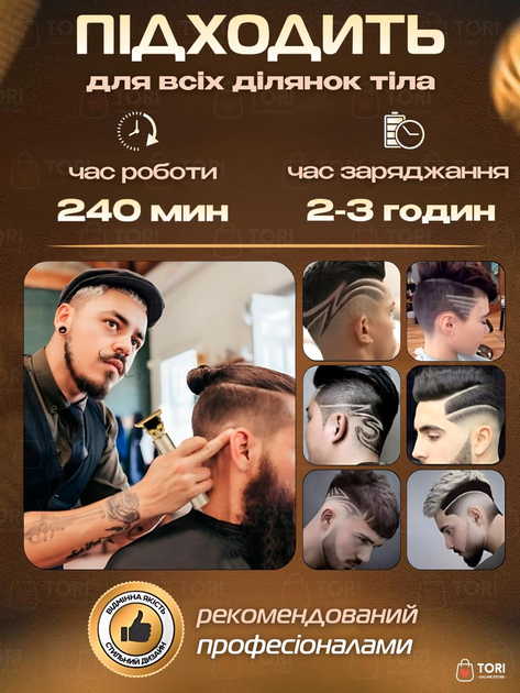 🔋 Потужний акумулятор 1200 мА·г гарантує до 240 хвилин автономної роботи, тому тример ідеально підходить як для професійних майстрів, так і для домашнього використання. Заряджається пристрій лише за 2–3 години через зручний USB-кабель, що дозволяє брати його з собою у подорожі чи відрядження.